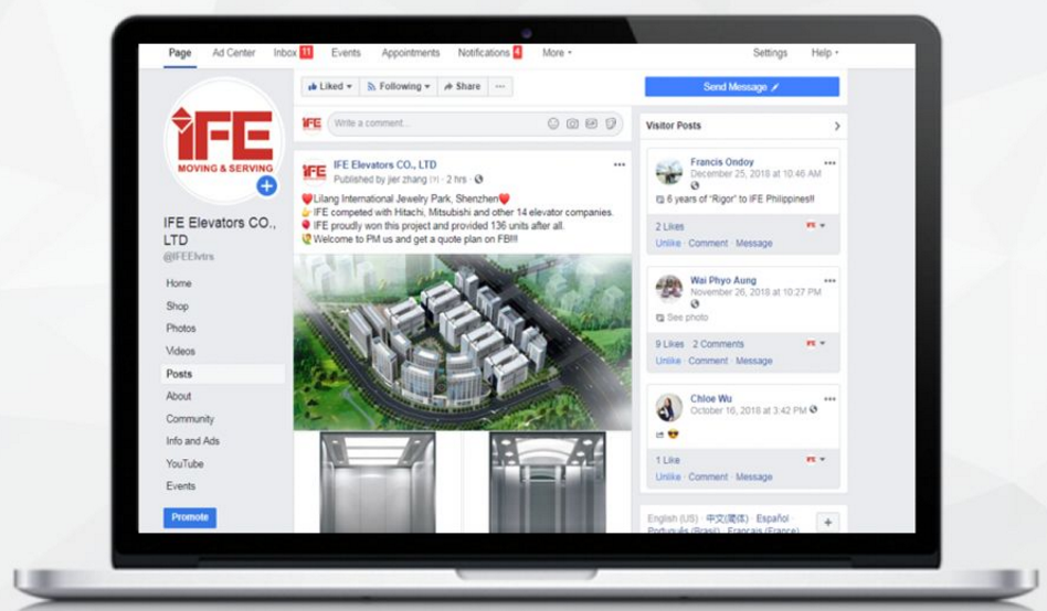 4.為快意電梯員工提供Facebook培訓(xùn),企業(yè)內(nèi)部員工學(xué)會操作,以確保對詢盤回復(fù)及時。